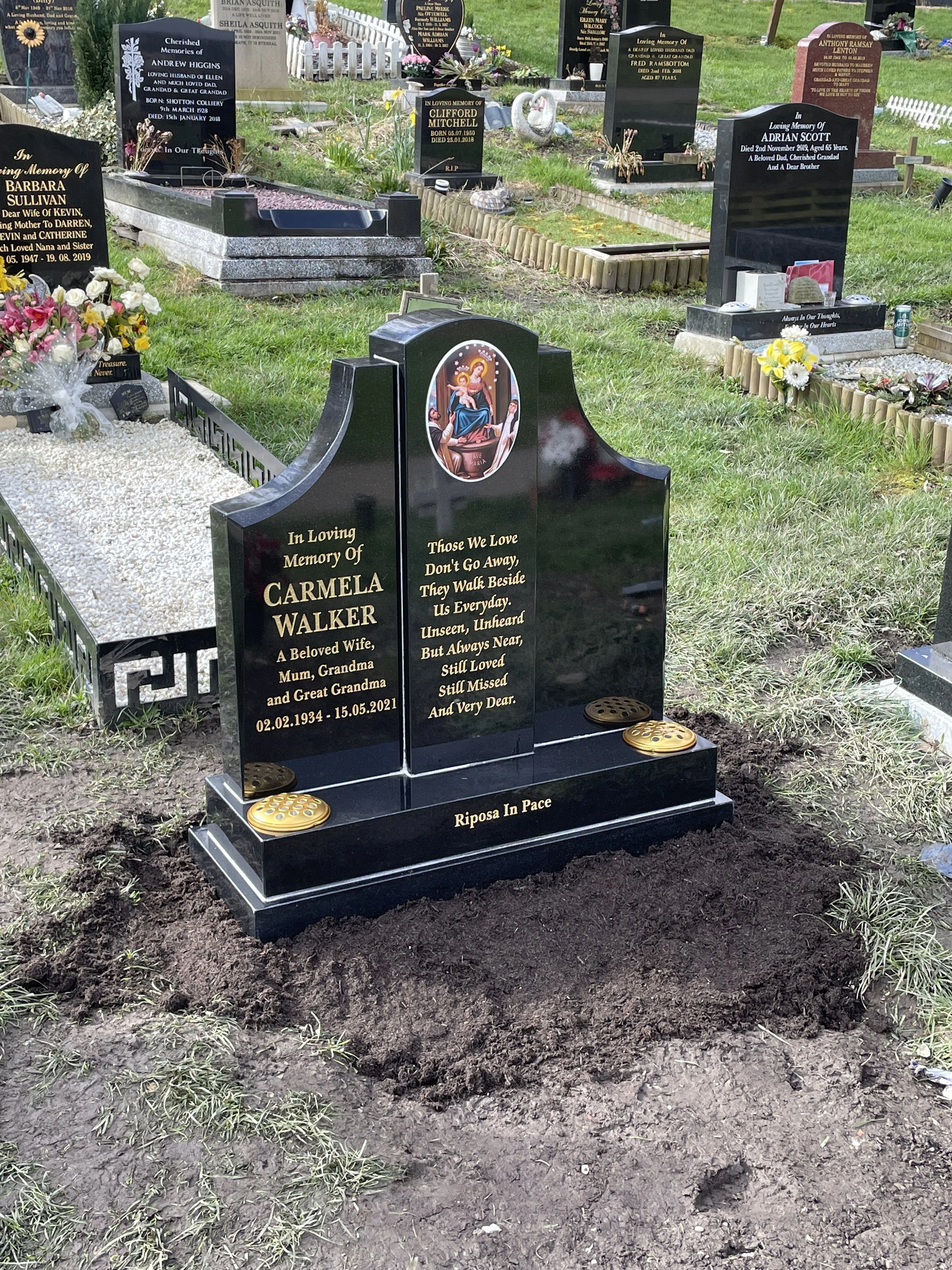 Regulations vary between cemeteries. We are happy to advise and confirm that your chosen memorial headstone meets all relevant rules and requirements before any work begins.